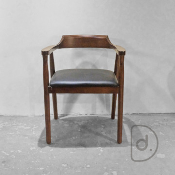 廣島椅 (胡桃木) - 經典設計 全實木扶手椅 黑皮軟墊