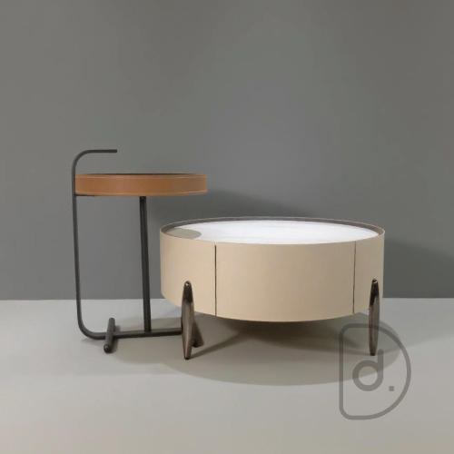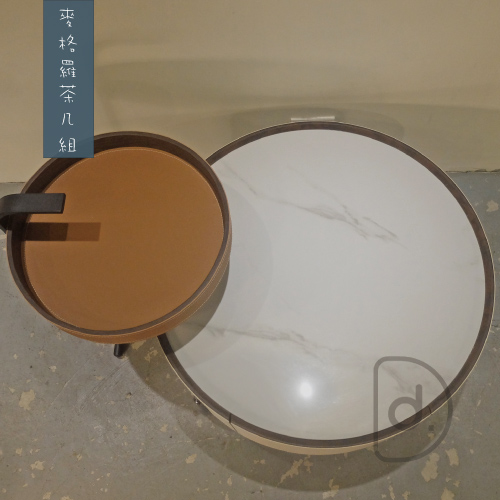 棕色皮革白紋大理石兩件式桌几