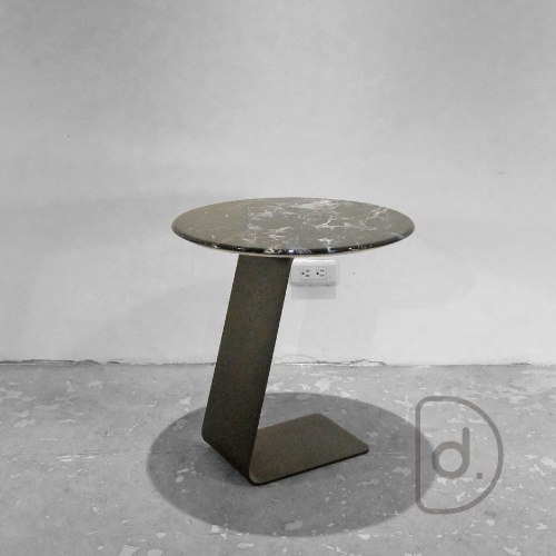 Z鋼圓几 (黑玫瑰) 50cm - ㄈ型邊几 藝術配色石板 沙發邊桌