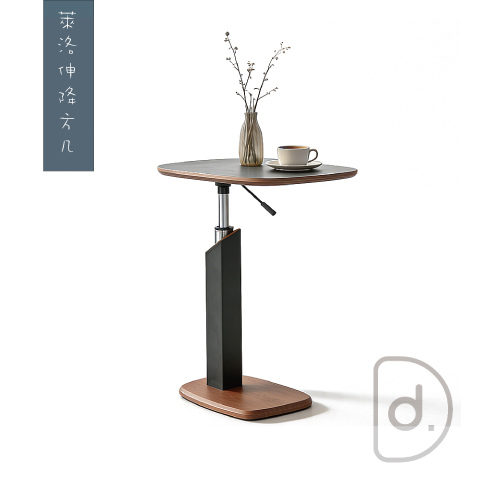 萊洛伸降圓几 (胡桃木/黑皮) - 移動式設計 升降小圓桌 現代北歐