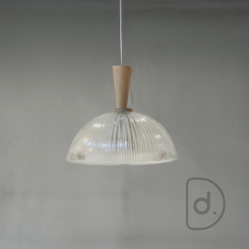 木圓紋吊燈 (直) - 藝術玻璃 木柄裝飾 設計照明